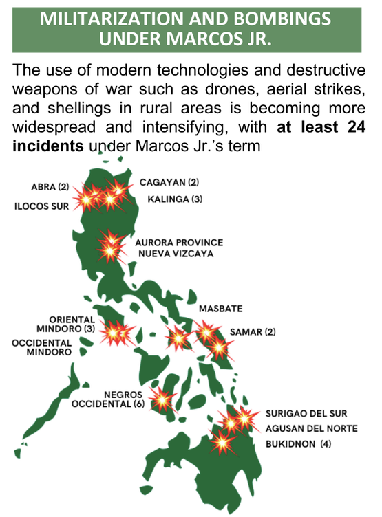 - Stop bombing civilian communities and key biodiversity areas! End the militarized terror in our rural poor communities!