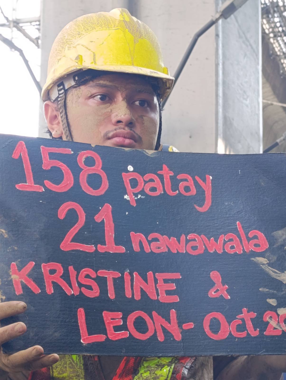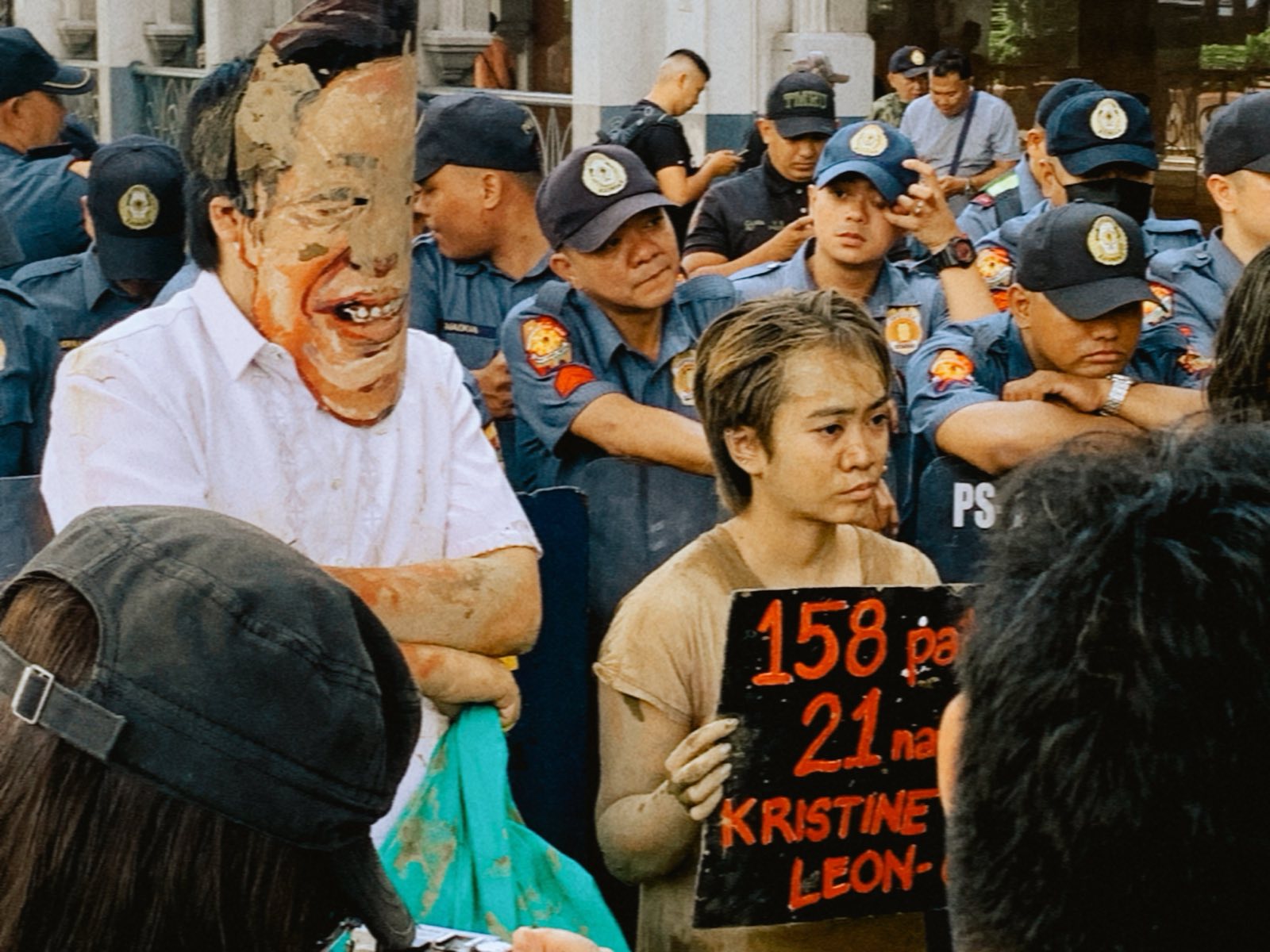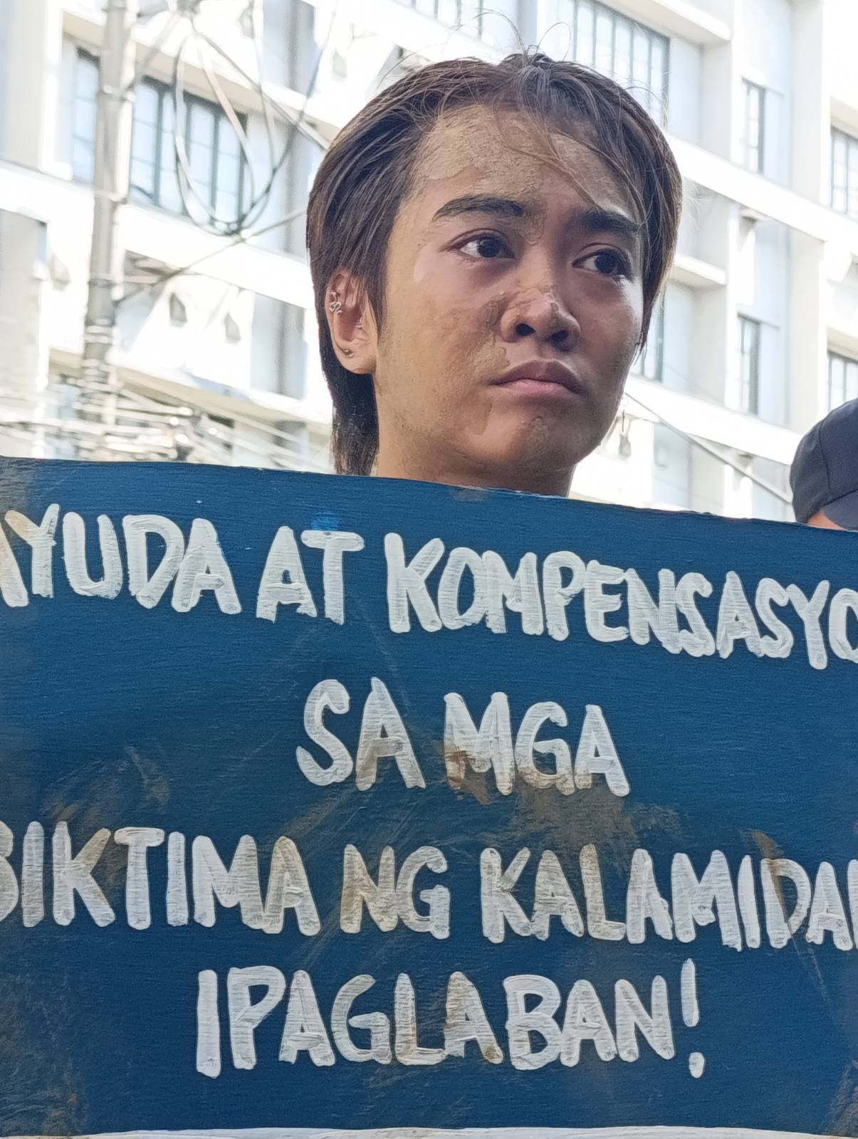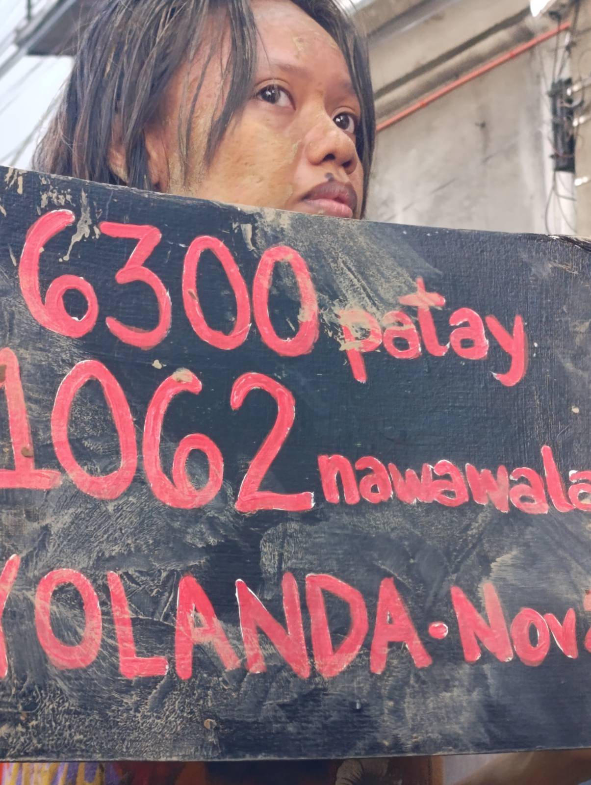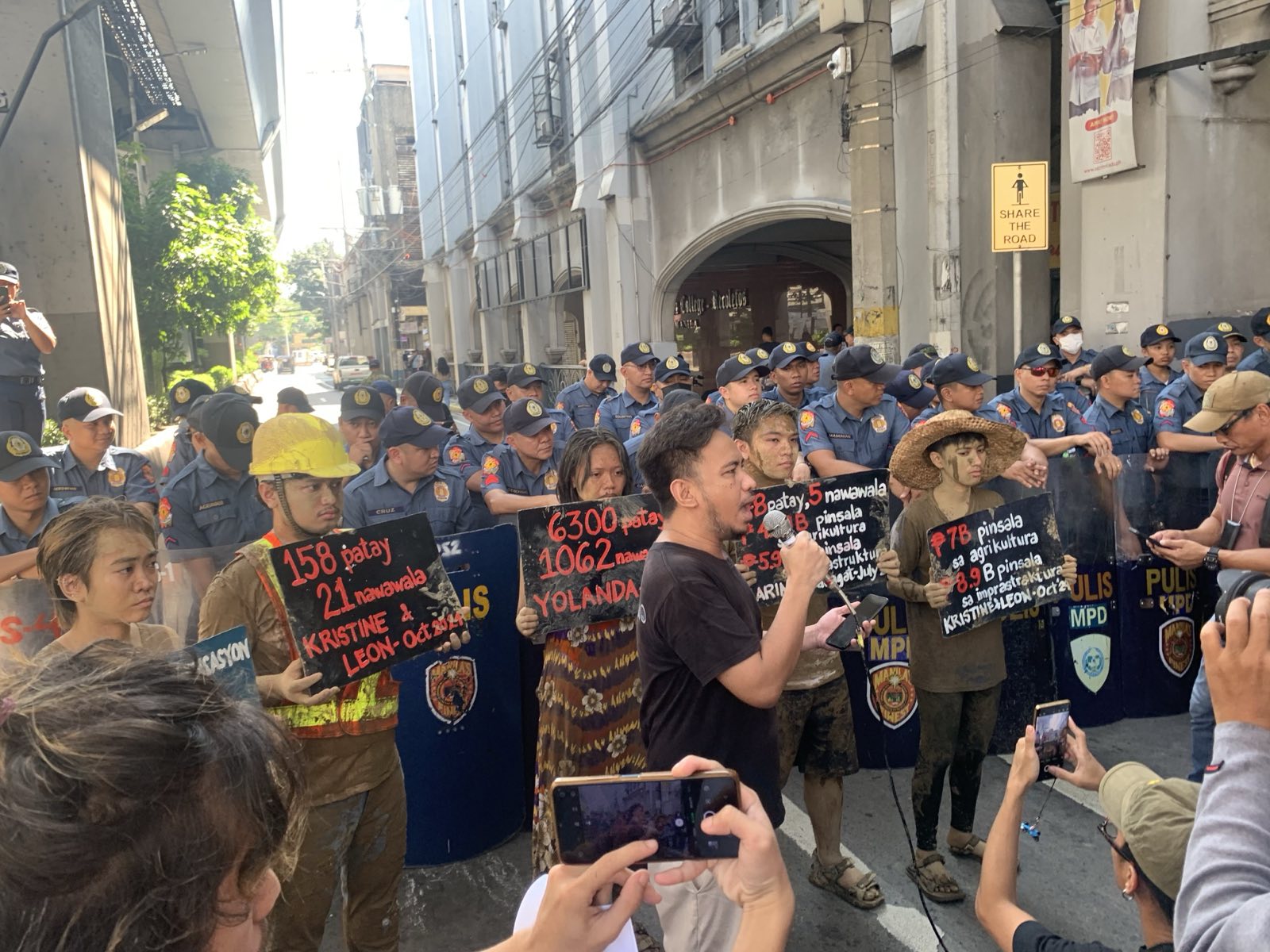 To visualize their plight, disaster survivors drenched in mud walked the streets, coming after a Marcos, Jr. impersonator.